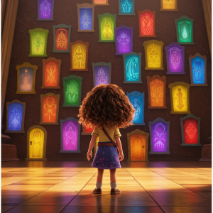 Cette nuit-là, Lia dormit à peine. Elle rêva de couloirs colorés, de jardins flottant dans les airs et de portes menant à des mondes différents.