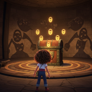 — Pour ouvrir le coffre, il faut du courage. À l’intérieur se trouve le Cœur du Château, la source de toute sa magie. Mais si tu échoues, les couleurs et les rires d’ici disparaîtront pour toujours.