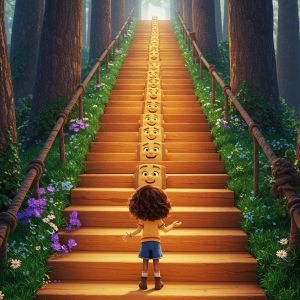 Mais ce n’était pas un escalier ordinaire : ses marches étaient faites de bois poli, et chacune arborait un visage souriant.